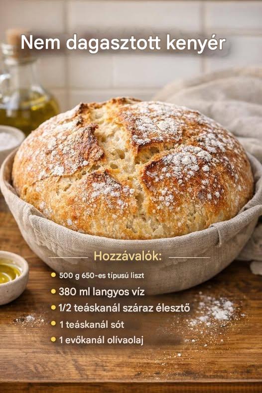 7️⃣ Süsd a kenyeret 30–35 percig, amíg aranybarnára sül és ropogós kérget kap.