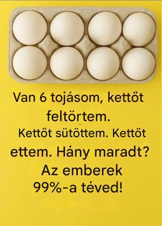🤯 És valóban! A legtöbb ember gondolkodás nélkül rosszul válaszol. Van, aki azt mondja, hogy 0 tojás marad, mások szerint 4, megint mások szerint 2… de melyik a helyes válasz?