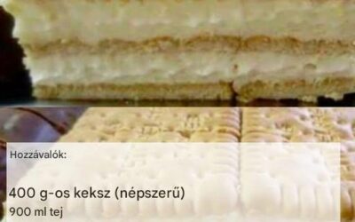 Hozzávalók: 400 g keksz (közönséges, háztartási) 900 ml tej 2 csomag vaníliás pudingpor 10 evőkanál cukor 1 csomag vaníliás cukor…