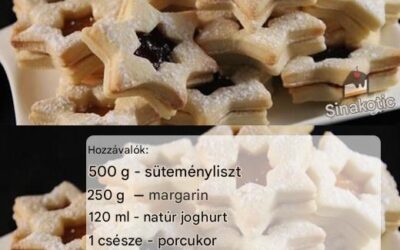 Hozzávalók: 500 g finomliszt 250 g margarin 120 ml natúr joghurt 1 csésze porcukor 2 csomag vaníliás cukor Marmelád a…