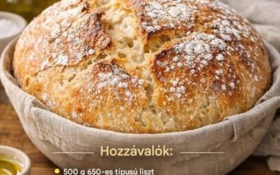 Hozzávalók 500 g 650-es típusú búzaliszt 380 ml langyos víz ½ teáskanál szárított élesztő 1 teáskanál só 1 evőkanál olívaolaj…