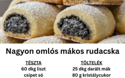 Ez egy nagyon omlós mákos rudacska receptje — egy klasszikus, omlós tésztájú sütemény finom mákos töltelékkel. 🍪 Íme a teljes…