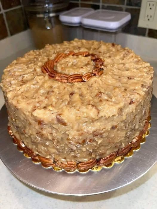 Ez a Német csokoládétorta igazi mestermű — gazdag, szaftos csokoládés piskótarétegeket édes, ragacsos kókuszos-diós krém koronázza. Nem véletlenül klasszikus: minden falatban tökéletes egyensúly van a mély csokoládés íz és a karamellizált, diós édesség között.