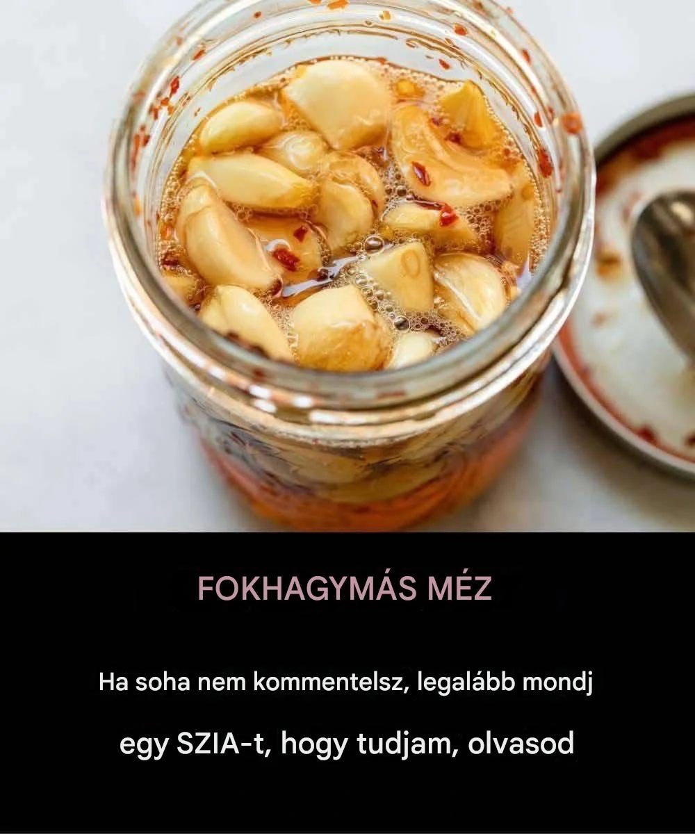 A 24 órás fokhagyma-méz gyógymód (egyszerű recept)Hozzávalók7 friss gerezd fokhagyma (lehetőleg bio)7 evőkanál nyers, szűretlen méz1 üveg légmentesen záródó fedéllelElkészítésHámozd meg a fokhagymát, és szeleteld fel vagy enyhén törd össze mindegyik gerezdet.Ez aktiválja az allicint, a kulcsfontosságú gyógyhatású vegyületet.Tedd a fokhagymát egy tiszta üvegbe.Teljesen fedd le mézzel.Zárd le az üveget, és hagyd állni 24 órán át hűvös, sötét helyen.Egy nap múlva a keverék elkészült – és minél tovább áll, annál erősebb lesz a gyógyító hatása. Hogyan kell szedni a legjobb eredmény érdekébenFogasson 1 evőkanálnyit minden reggel éhgyomorra.Várjon 15–20 percet reggeli előtt.Folytassa 7 egymást követő napon, majd pihentesse egy hétig.Ismételje meg havonta egyszer a méregtelenítés, az energia és az immunrendszer támogatása érdekében.