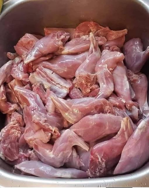 A képen kicsi, nagyon sovány, vékony csontú és kevés zsírral rendelkező lábak láthatók. A forma keskeny és enyhén ívelt – jellemző a békacombokra (békahús).