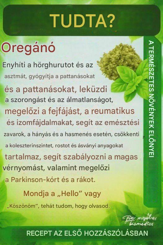 Részletes recept oregánóteához éhgyomorra