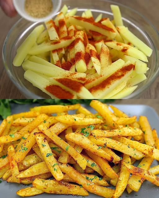 Helyezze a hasábburgonyát egy nagy tálba.